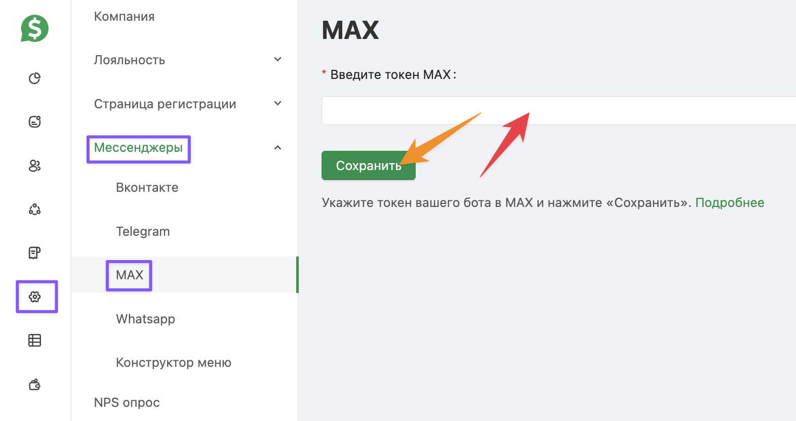 Ниже рассмотрим подключение бота к Samosale и особенности работы MAX.