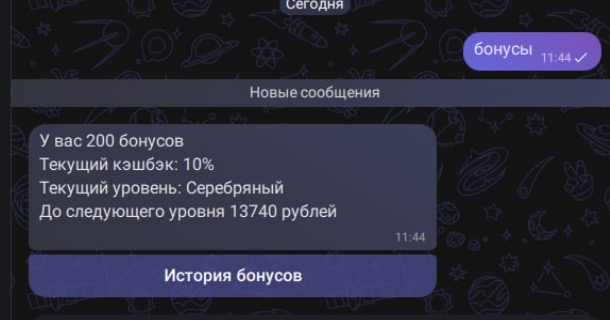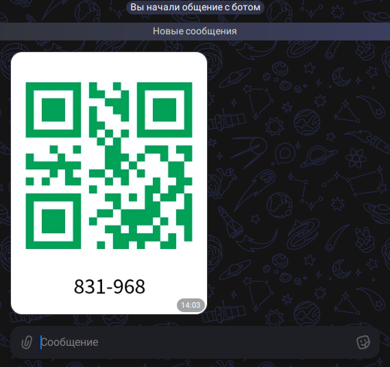 • Если пользователь уже зарегистрирован в боте — откроется изображение его персонального QR-кода.